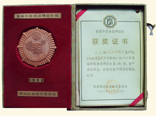 1988年封缸酒获首届中国食品博览会金奖