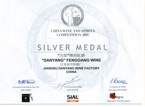 2007年2月“旦阳”牌封缸酒获“2007中国国际(瑞士)葡萄酒、烈酒评酒会银质奖”